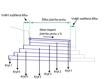 Dorovnání sklonu krajnice s jízdním pruhem je vyžadováno v případě změny sklonu zpevnění vozovky při použití klopení vozovky.