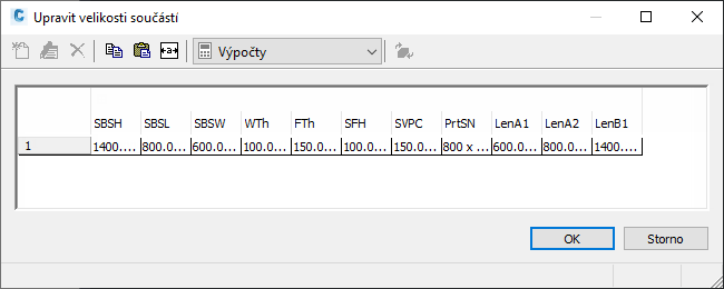 - Chcete-li zadat název jedinečné vypočtené velikosti součásti, vyberte na panelu nástrojů tlačítko výpočty.