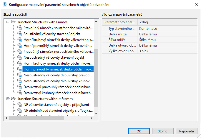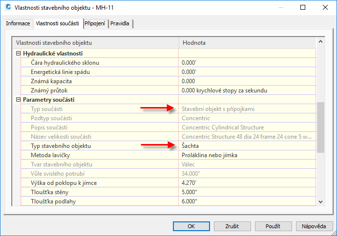 Další informace naleznete v části Mapování parametrů stavebních objektů odvodnění pro analýzu gravitační sítě.