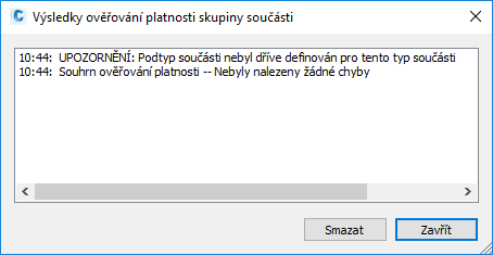 dialog s výslednou chybou, pokud je součást neplatná