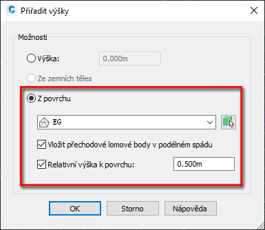 Poznámka: Pokud ve výkresu nejsou žádná zemní tělesa, možnost Ze zemních těles není k dispozici.