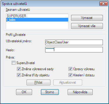 K definování tříd objektů této verze aplikace AutoCAD Map 3D toolset potřebujete příslušná uživatelská oprávnění.