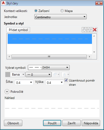 - V poli Vybrat symbol vyberte čárkovaný vzor pro čáry.