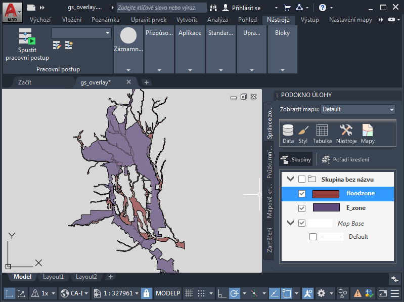 Hladiny se přidají do mapy a uloží se do skupiny, kterou jste vytvořili.