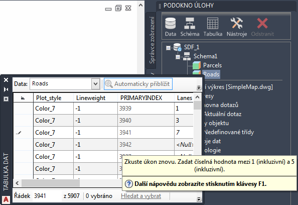 Připojili jste dříve vytvořený soubor SDF a přidali do schématu novou vlastnost. V Tabulce dat jste zadali hodnoty pro novou vlastnost.