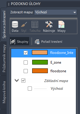 Mapa teď zobrazuje dvě původní hladiny a novou hladinu představující překrytí.