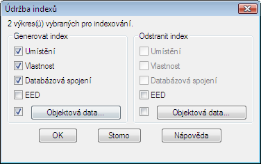 Vytvoří se indexy. Při práci s výkresy pravidelným opakováním tohoto postupu aktualizujte a znovu vytvářejte indexy.