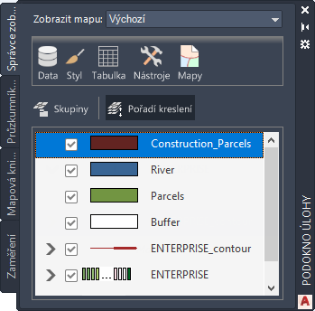 Kliknutím na položku Pořadí kreslení můžete změnit vzájemné překrytí hladin.