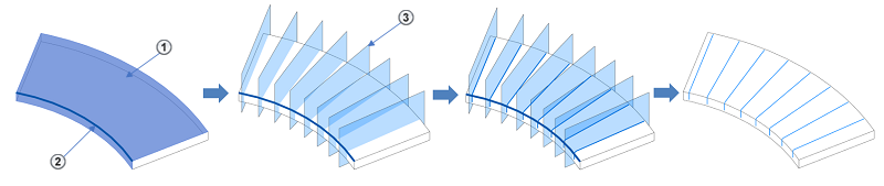 je hranou prvku, který může být hostitelem výztuže. Trajektorii je možné vybrat přímo při umísťování sady výztuží. Trajektorii je možné vybrat při umísťování sady kliknutím na hrany konstrukčního prvku. Trajektorii je možné upravit přidáním nebo odebráním stěn z vazeb Plocha cesty 1 a Plocha cesty 2 v režimu úprav vazeb.