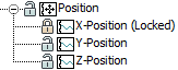 Die X-Position ist gesperrt, die Y- und die Z-Position sind freigegeben.
