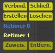 Sie aktivieren einen Retimer und zeigen seine Markierungen an, indem Sie auf seinen Namen in der Liste klicken. Der Name des aktiven Retimers wird in Blau angezeigt; die restlichen Retimer erscheinen in Gelb.