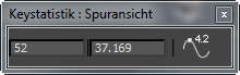 Der Werkzeugkasten "Keystatistik" zeigt die Zeit und den Wert eines einzelnen markierten Keys an. Außerdem steht die Option "Statistiken anzeigen" im Key-Fenster des Kurveneditors zur Verfügung. Sie wird standardmäßig im unteren Werkzeugkasten der Spuransichtsmodi "Dope-Sheet" und "Kurveneditor" (mit klassischem Layout) angezeigt.