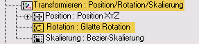 Die glatte Rotation ist der linearen Rotation sehr ähnlich, bei der glatten Rotation kann die Interpolation jedoch nicht verändert werden. Die glatte Rotation hat folgende Eigenschaften: