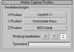 - Zeigen Sie im Geräte-Rollout im unteren Teil des Dialogfelds "Motion Capture" Gerätesteuerelemente an. Wenn einer Achse kein Gerät zugewiesen wurde, ist diese Option abgeblendet.