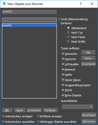 Anmerkung: Objekte können immer nur einer Mischung hinzugefügt werden. Sobald ein Objekt zu einer Mischung gehört, wird es aus der Liste entfernt.