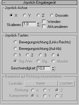 Anmerkung: Die Steuerelemente in diesem Bereich sind nur verfügbar, wenn die Option "Akkumulieren" im Bereich "Joystick-Achse" aktiviert ist.