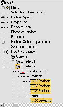 Das Controller-Fenster zeigt die Objektnamen und die Controller-Spuren an und legt fest, welche Kurven und Spuren zur Anzeige und Bearbeitung zur Verfügung stehen. Sie können Elemente in der Hierarchieliste im Controller-Fenster nach Bedarf mit dem Kontextmenü der Hierarchieliste erweitern und neu anordnen. Einige Navigationshilfsmittel befinden sich auch im Menü "Anzeigen" der Spuransicht. Als Vorgabe werden nur ausgewählte Objektspuren angezeigt. Mithilfe der manuellen Navigation können Sie einzelne Spuren ausblenden oder erweitern. Wenn Sie bei gedrückter ALT-TASTE mit der rechten Maustaste klicken, wird ein weiteres Menü angezeigt, über das Sie Spuren ausblenden und erweitern können.