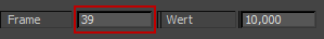 Das bearbeitbare Feld "Frame" zeigt die zeitliche Position des ausgewählten Keys. Um den Key zu einer anderen Zeitposition zu verschieben, können Sie eine neue Frame-Nummer oder einen Ausdruck eingeben.