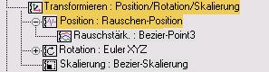 Mit dem Rauschen-Controller wird über mehrere Frames hinweg eine zufällige fraktale Animation erstellt. Rauschen-Controller sind parametrisch, sie wirken sich auf einen Bereich von Frames aus, verwenden aber keine Keys.