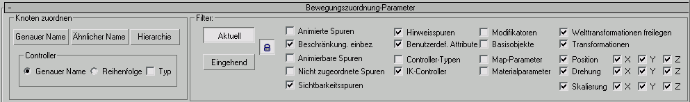 Dieses Rollout enthält Steuerelemente zur automatischen Zuordnung von Animationsspuren und zum Filtern von Spuren.