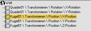 - Transformationen (Position, Rotation, Skalierung, X/Y/Z/W-Achsen in beliebiger Kombination)