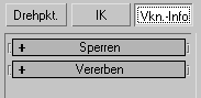 Dieser Abschnitt der Hierarchiegruppe enthält zwei Rollouts. Im Rollout Sperren finden Sie Steuerelemente zur Beschränkung der Objektbewegung auf einer bestimmten Achse. Das Rollout "Vererben" bietet Steuerelemente zur Begrenzung der Transformationen, die ein untergeordnetes von einem übergeordneten Objekt erbt.