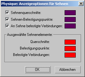 Über dieses Dialogfeld können Sie festlegen, wie Physique die Sehnen auf der Unterobjektebene "Sehnen" anzeigt.