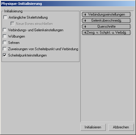 Die Optionen im Bereich "Initialisierung" des Dialogfelds "Physique-Initialisierung" stehen nur zur Verfügung, wenn Sie auf "Neu initialisieren" klicken.