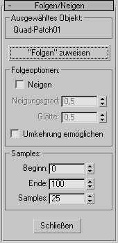 2. Stellen Sie die Optionen im Rollout "Folgen/Neigen" ein.