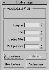 Zeigt die Nummer der ersten Bilddatei in der ausgewählten Sequenz an. Erhöhen Sie diese Zahl, um ein anderes Anfangsbild für die .ifl -Datei anzugeben.
