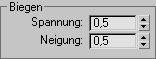 - Bei Werten zwischen 0,0 und 1,0 konzentriert sich der Effekt näher am Gelenk. Der Effekt ist am Gelenk am konzentriertesten, wenn die Spannung auf 0,0 gesetzt ist. Werte über 1,0 verschieben den Effekt weiter vom Gelenk weg. Bereich = 0 bis 2,0; Vorgabe = 0,5.