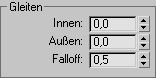 Oben: Die Einstellung für "Innen" und "Außen" beträgt 0,0 (kein Gleiten).