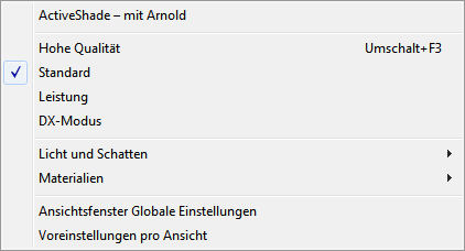 Anmerkung: Es kann jeweils nur ein Ansichtsfenster auf ActiveShade eingestellt sein. Bei Einstellung eines weiteren Ansichtsfensters auf ActiveShade wird jegliches zuvor eingestellte Ansichtsfenster aus dem Modus entfernt.