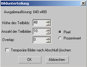 Diese Einstellung und die Einstellung "Höhe des Teilbilds" verhalten sich umgekehrt proportional zueinander und beeinflussen sich gegenseitig: wird der eine Wert erhöht, reduziert 3ds Max den anderen.