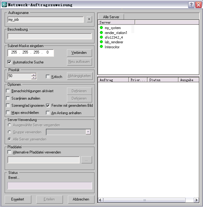 3ds Max öffnet das Dialogfeld Netzwerk-Auftragszuweisung.