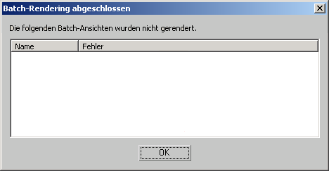 In diesem Dialogfeld werden Sie informiert, welche Batch-Renderings nicht abgeschlossen werden konnten. Wenn möglich, enthält es auch eine Beschreibung der Fehlerursache.