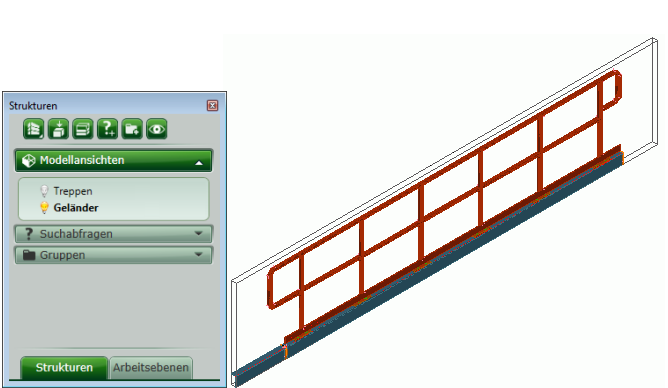 Sie können eine Modellansicht erstellen, um den Schnittpunkt von Elementen anzuzeigen. Sie ist beim Erstellen der erforderlichen Verbindungen hilfreich. Die vorgegebene Ansichtsrichtung ist die Draufsicht.