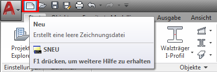 - Klicken Sie im Schnellzugriffs-Werkzeugkasten auf Neu:
