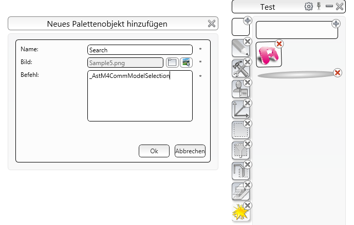 - Fügen Sie einer Werkzeugpalette neue Schaltflächen hinzu.
