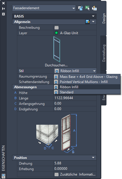Gehen Sie wie folgt vor, um einen anderen Stil für das Fassadenelement zu wählen.