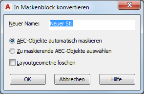 - Deaktivieren Sie die Option AEC-Objekte automatisch maskieren, um zu vermeiden, dass bestehende AEC-Objekte, die die Polylinien überschneiden, umgewandelt werden.