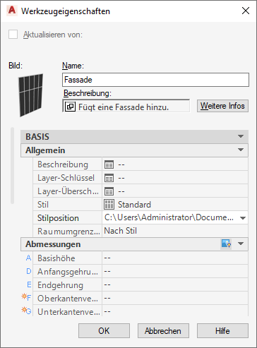 - Vergewissern Sie sich, dass das Werkzeug auf eine Projektstandardszeichnung verweist.