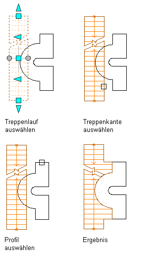 Projizieren von Treppenkanten auf eine gebogene Polylinie