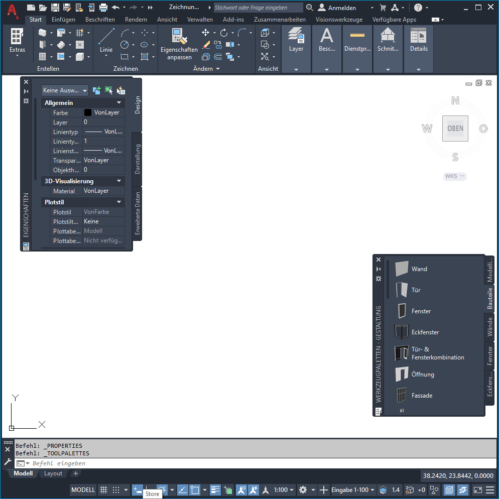 Standardkonfiguration des Arbeitsbereichs in AutoCAD Architecture 2021 Toolset