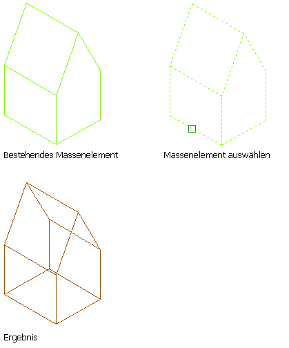 Wenn Sie ein Massenelement extrusiven Typs in einen Raum konvertieren, wird er als extrudierter 3D-Raum erstellt. Zu Massenelementen nicht extrusiven Typs gehören:
