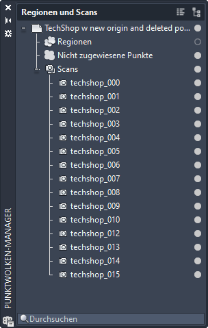 Sucht über den Namen nach einer Punktwolke, Region oder Scan-Datei.