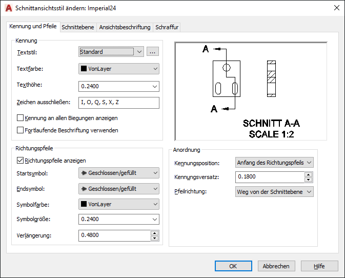 Registerkarte Kennung und Pfeile (Schnittansichtsstil-Manager)