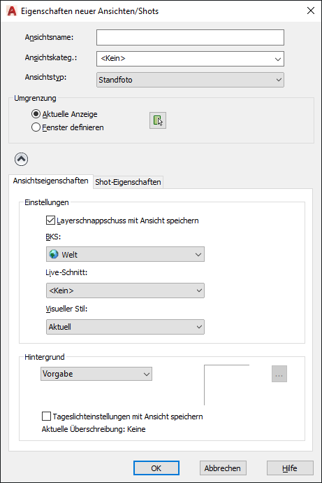 Speichert eine neue Ansicht und dient zur Verwaltung der zugehörigen Eigenschaften.