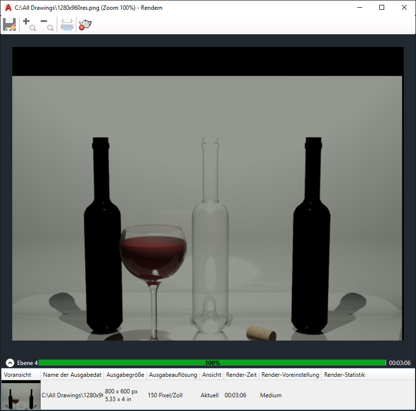 Die Renderausgabe aus einer Zeichnung wird immer im entsprechenden Renderfenster angezeigt.