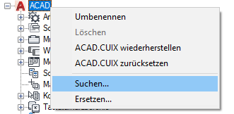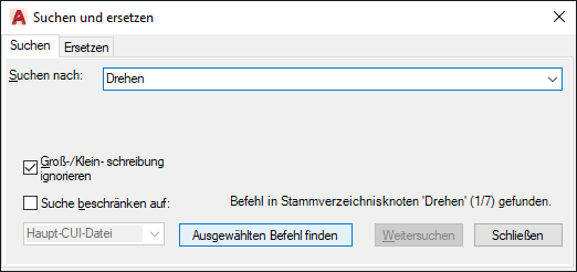 So suchen Sie nach Befehlen und Text in einer Anpassungsdatei (CUIx)